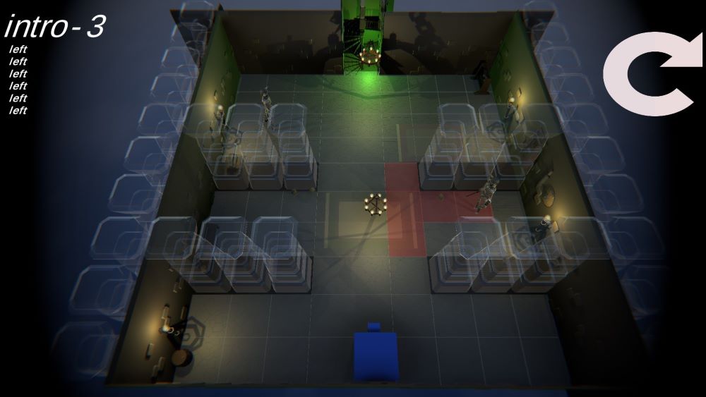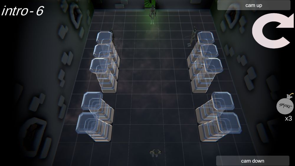 We hebben besloten om een prototype te maken van een sluipende puzzelgame, waarbij je als speler eerst al je bewegingen moet plannen voordat je een level kunt voltooien. Je kunt met de muis over vijanden bewegen om hun gezichtsveld te zien. Steek de vijanden in de rug om ze uit te schakelen! Naarmate je verder komt in het spel, krijg je toegang tot rookbommen en lokmiddelen voor nog uitdagendere puzzels!